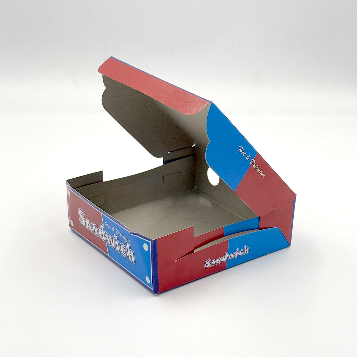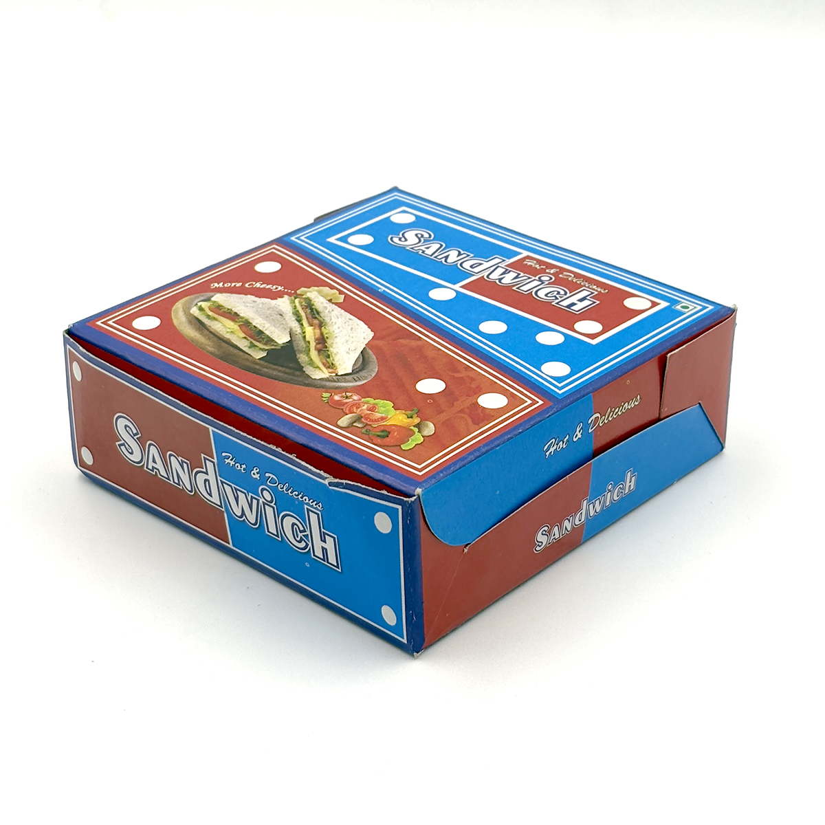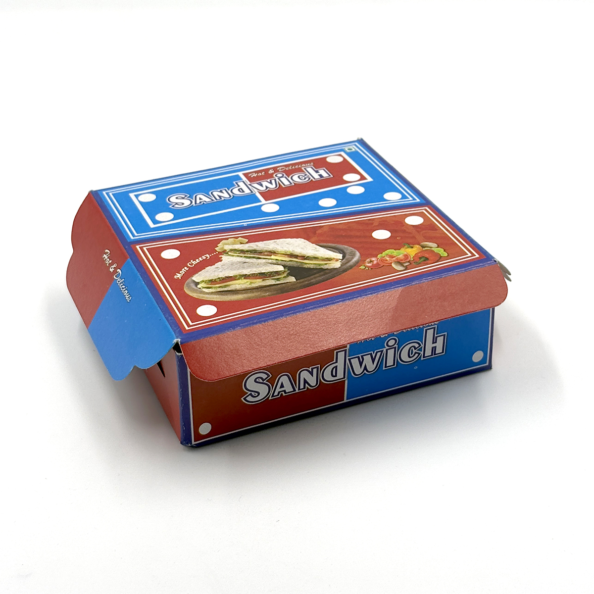 Present your sandwiches with style and hygiene using our Sandwich Box, designed specifically for cafes, food stalls, and delivery services. With a colorful, printed design that says “Hot & Delicious”, this box keeps your sandwich secure, fresh, and visually appealing. Perfect for both cold and grilled sandwiches, the box is made from food-safe, eco-friendly material and is ideal for dine-out, takeout, or delivery.